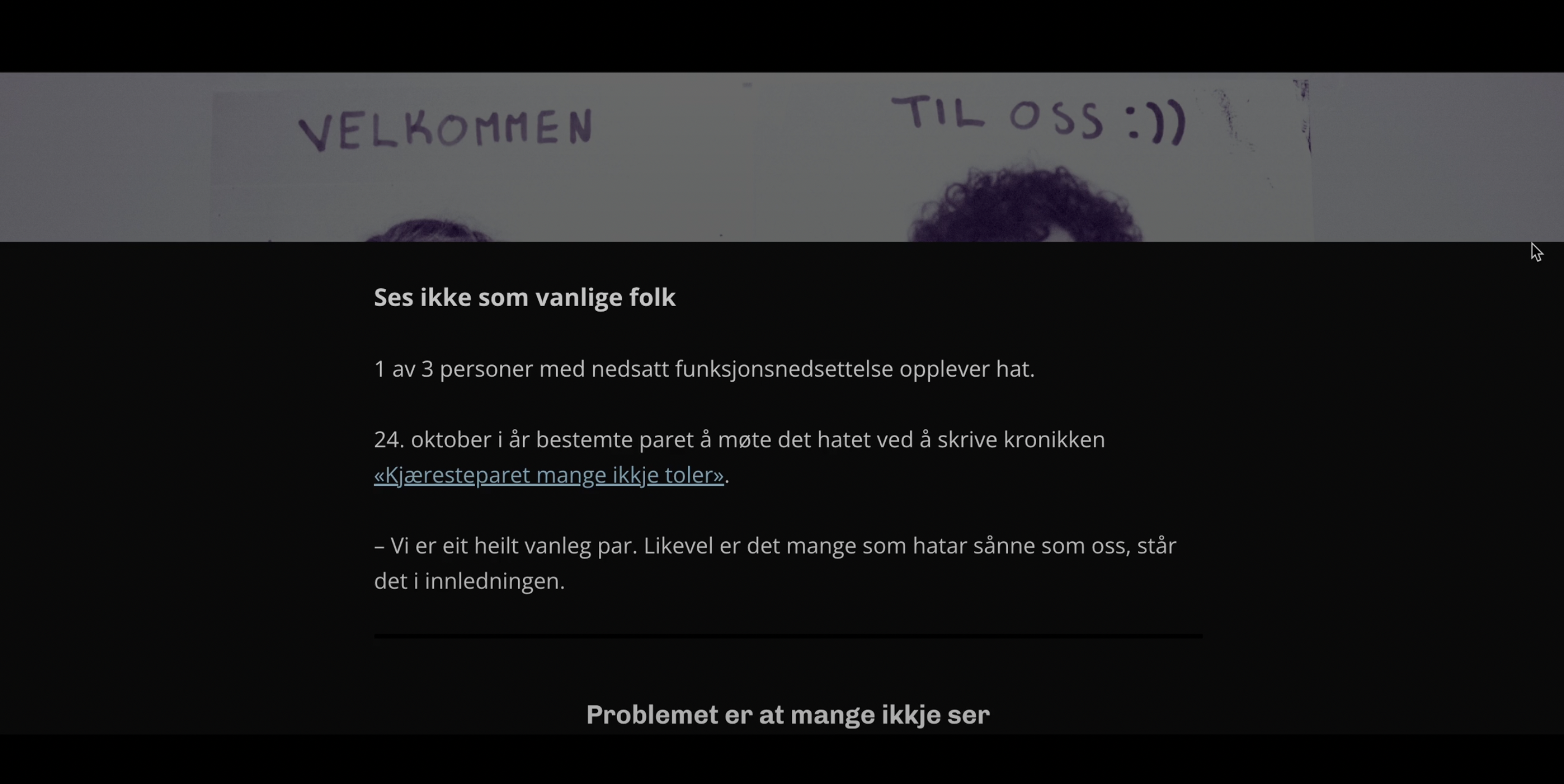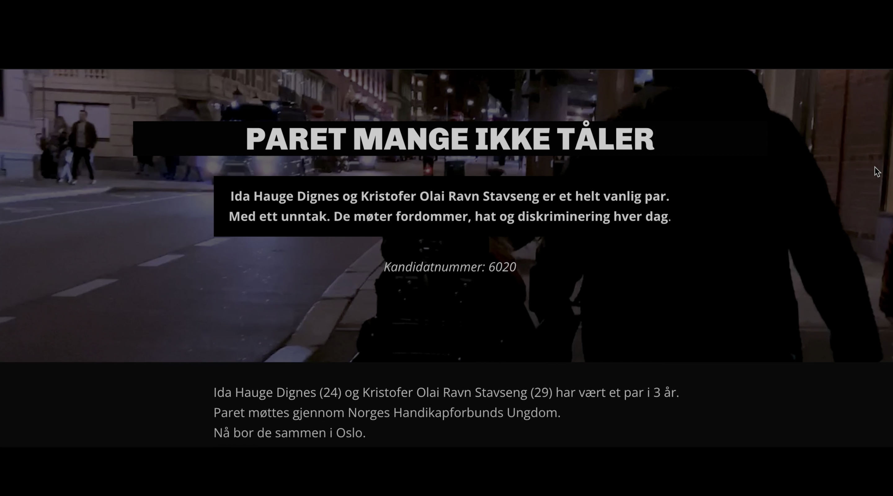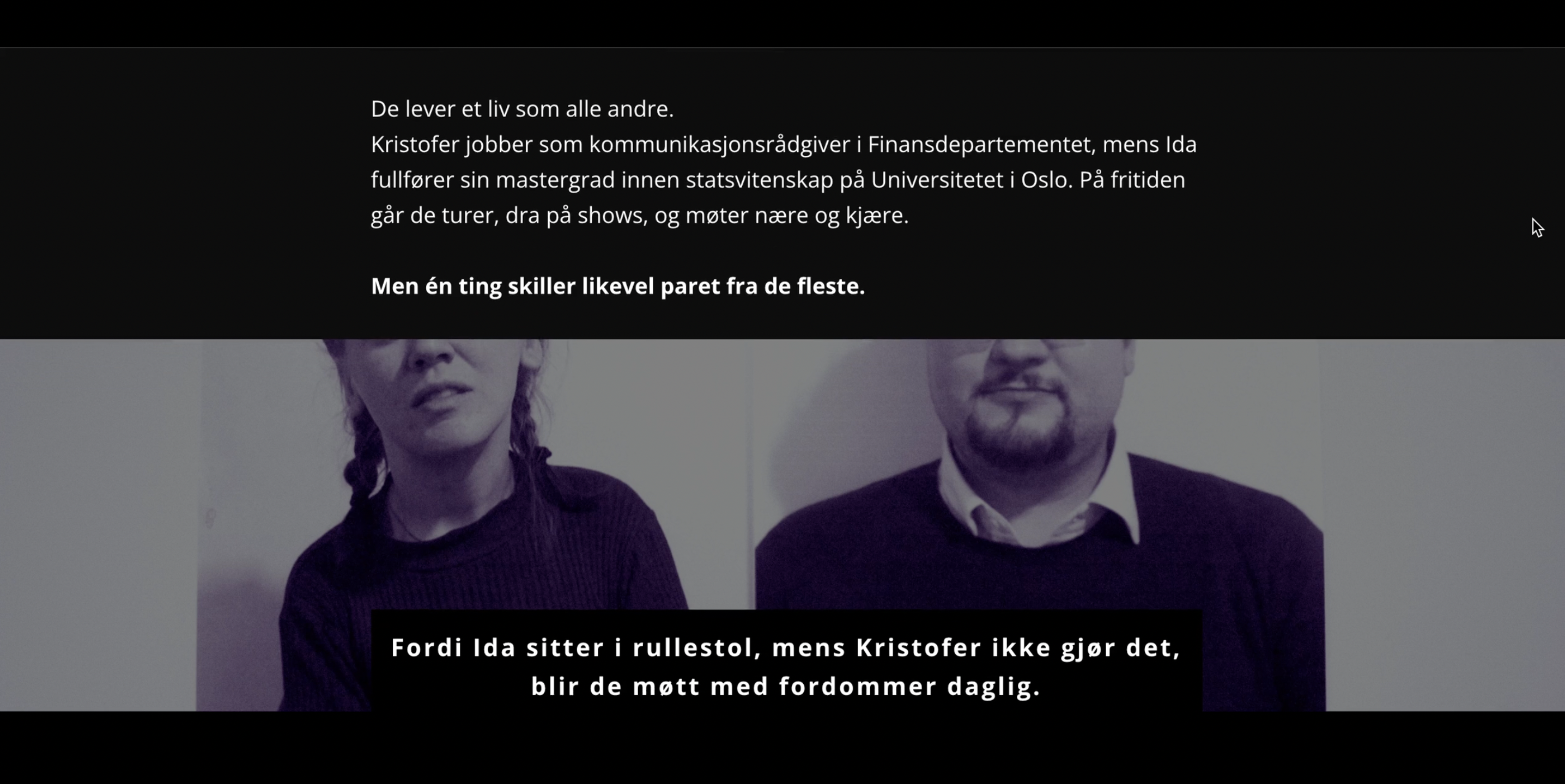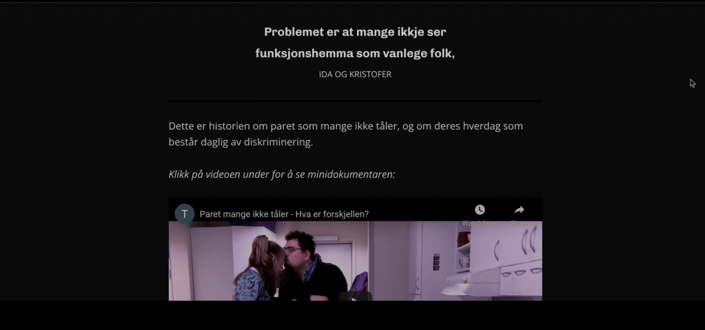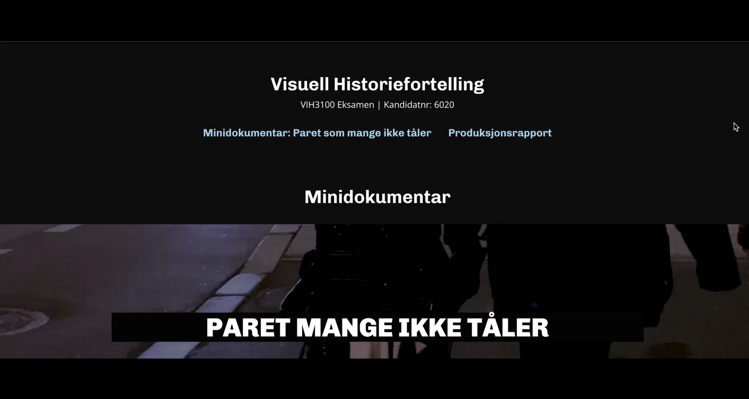 Det var viktig å skape en mørk bakgrunn på nettsiden for å lage en dramaturgi som passet til videoen og temaet, samtidig som den fremhevet teksten og stemningen i bildene.